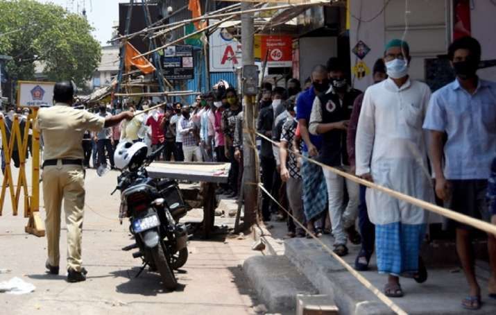 people formed bee-lines at the liquor shops and violated the social distancing