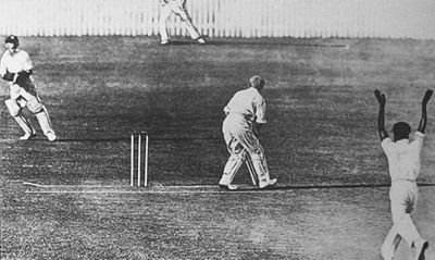 Eddie Gilbert getting out Bradman for Duck.