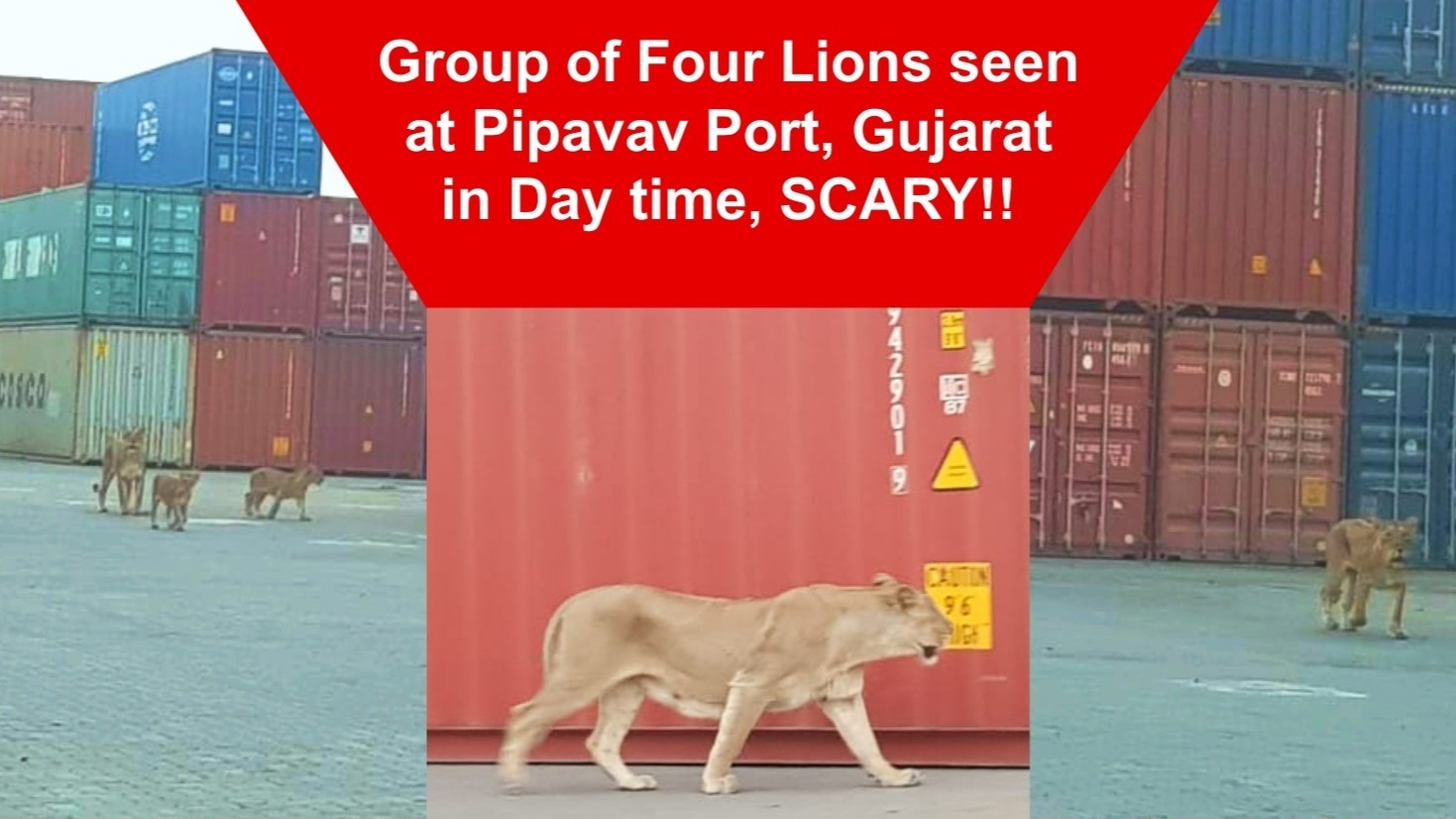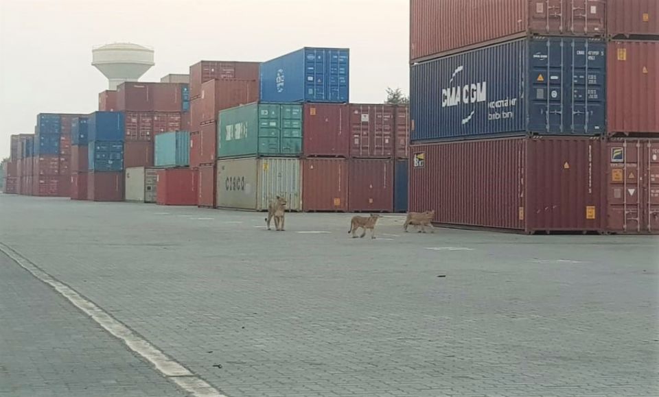 Lions are on Saurashtra trip; Yes, big cats are enjoying in all the places of Saurashtra this winter. Recently they were seen in Surendranagar districts now Group of Lion and lioness were seen on Pipavav port.Scary!! it was like groups of big cats were on a picnic, and everyone surprised and scared