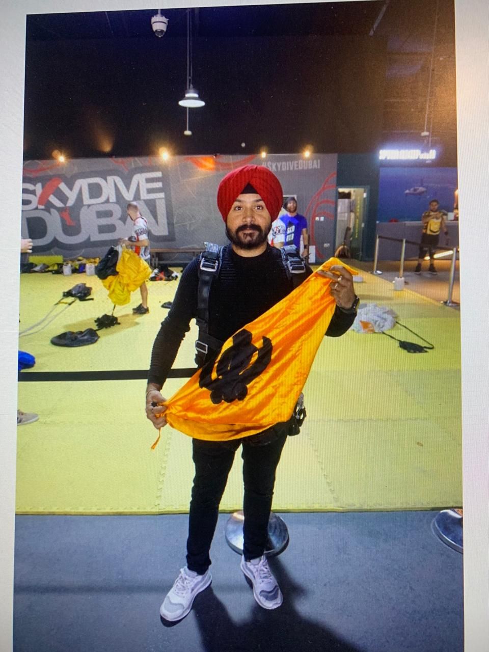 Navjyot skydived on February 29, 2020, in the Palm drop zone, Dubai & became the first person to raise & wave the Sikh flag in the sky called "Nishan Sahib" & create a world record. As he achieved the milestone of his life, skies seemed to roar the pride of Sikhism gloriously.