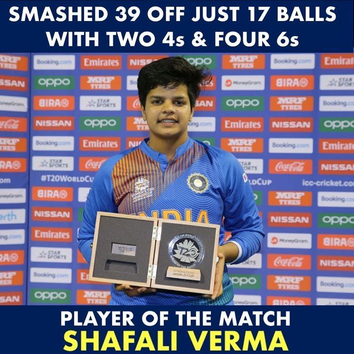 She is striking beautifully in ongoing T20 women's WorldCup 2020. Shafali Verma has score 46runs of 34ball against Newzealand, 29runs of 15balls against strong Australian team and 39runs of only 17balls against art rivals Bangladesh. She is only 16, but her every score is giving India a good start. Because of Shafali, India may win T20 Women's WorldCup 2020.